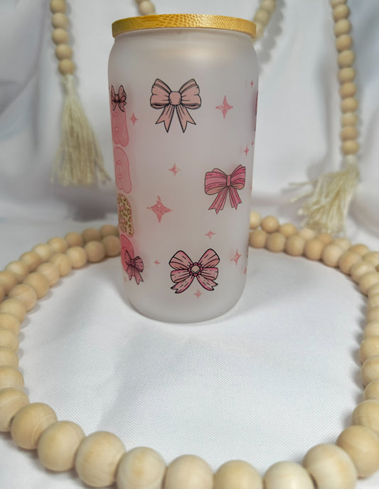MAMA Pink Bow 16oz Frosted Glass Tumbler