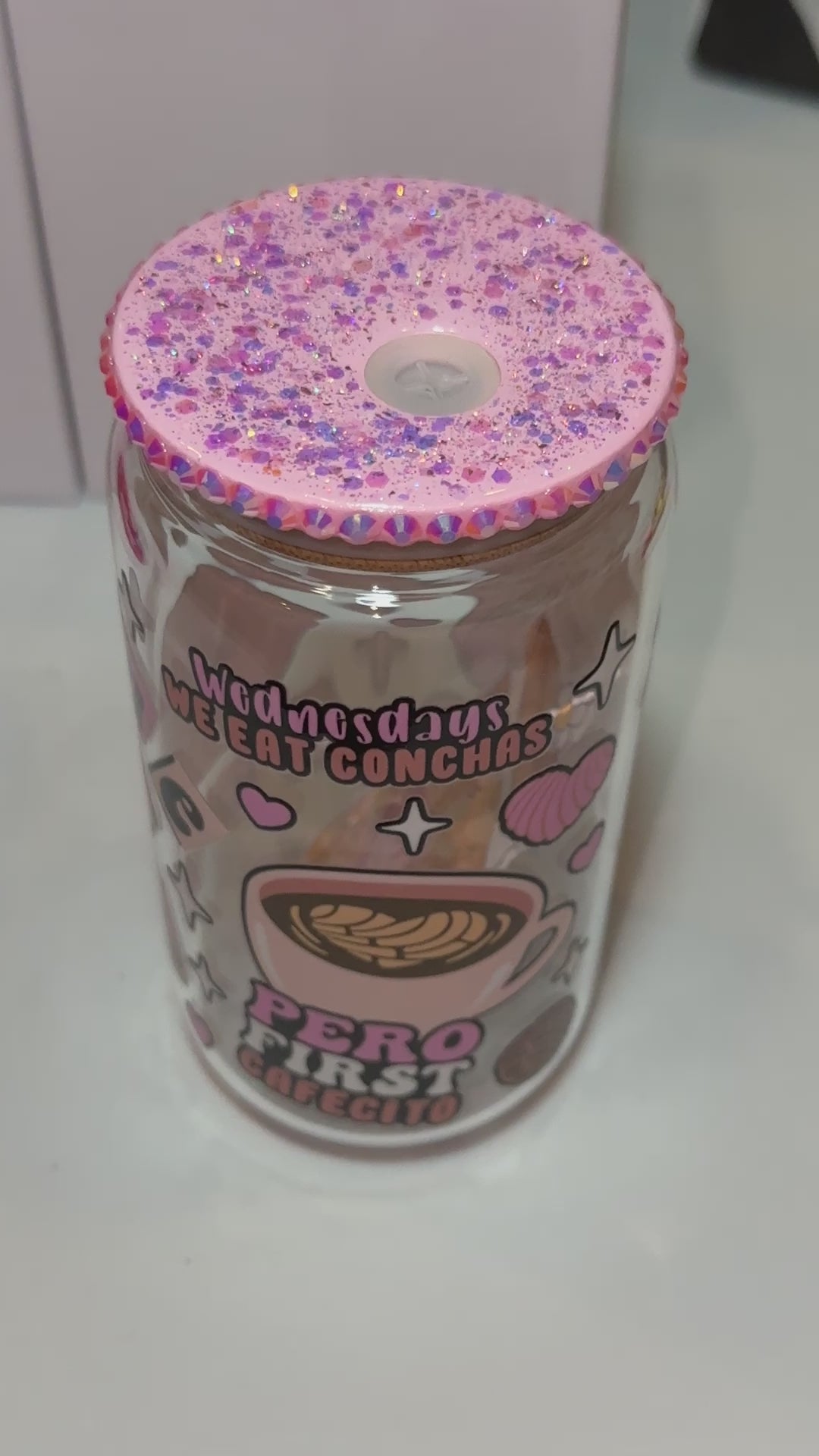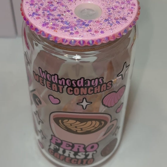 Chisme Book Glass Cup, can hold up to 16oz of liquid.